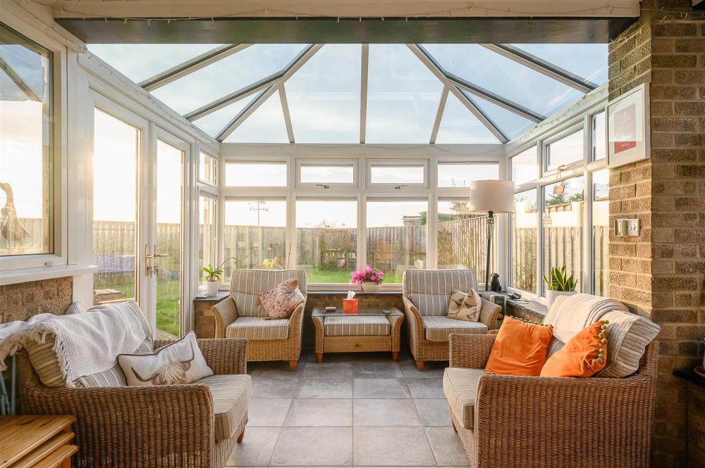 The ground floor accommodation comprises: a welcoming sized side entrance hall with coats cupboard and adjacent WC; plus Oak engineered flooring which continues through to the social hub of the property; an impressive 'Open Plan' kitchen diner with conservatory beyond access by bi-fold doors and enjoying under floor heating. The kitchen diner includes a central island with breakfast bar, granite tops, double oven, microwave, electric hob with extractor over, integral dishwasher, wine fridge, and Belfast sink with garden views; plus underfloor heating. Integral garage access with plumbing for washing machine and space for dryer. To the front of the property is a noticeably light living room with bay window and separate arch window plus multi-fuel burning stove set on a brick hearth.