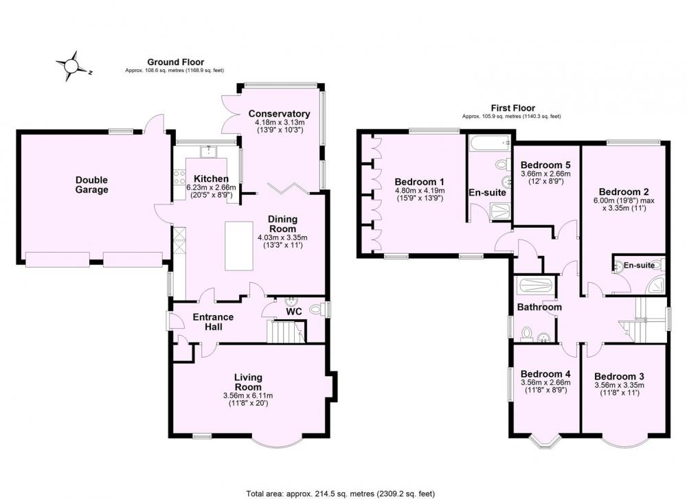 1st floor accommodation: a generous sized landing provides access to five large bedrooms including extra-large main bedroom which enjoys a modern en-suite with bath and separate double width shower cubicle, plus extensive fitted wardrobes, and lovely countryside views. The 1st floor also has a contemporary house shower room plus an additional bedroom with modern en-suite shower room. Airing cupboard with hot water cylinder.