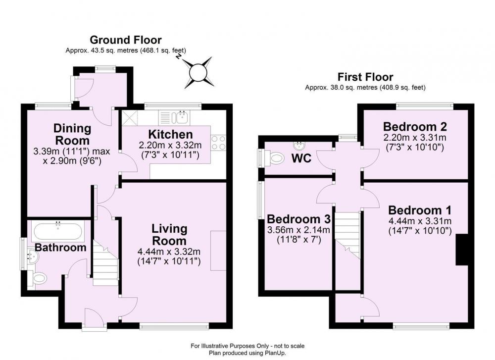 Upstairs, the generous master bedroom offers ample space for freestanding furniture and includes useful eaves storage. Two further double bedrooms, one currently used as a home office, along with a separate WC and washbasin complete the accommodation.