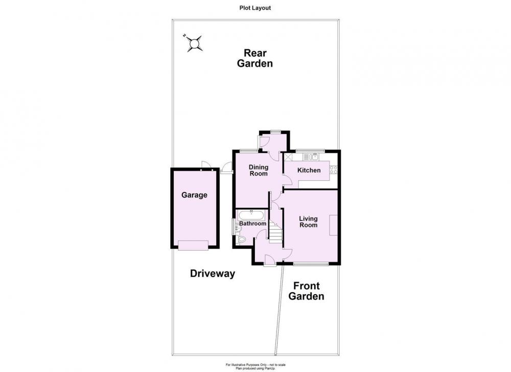 At the front, a driveway leads to a detached single garage, a gate giving access to the rear garden and the entrance door. The front garden sits to one side, bordered by a mature hedge that offers a sense of privacy.