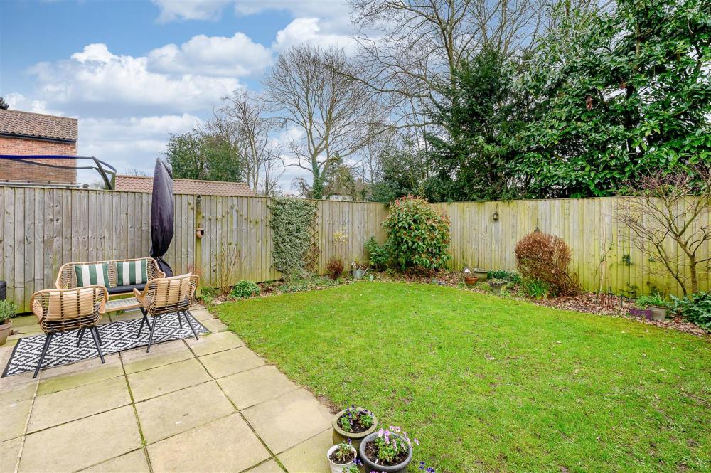 Externally, the property benefits from a private rear garden, predominantly laid to lawn with a patio area ideal for outdoor dining and entertaining. The garden also provides access to the garage and side driveway.