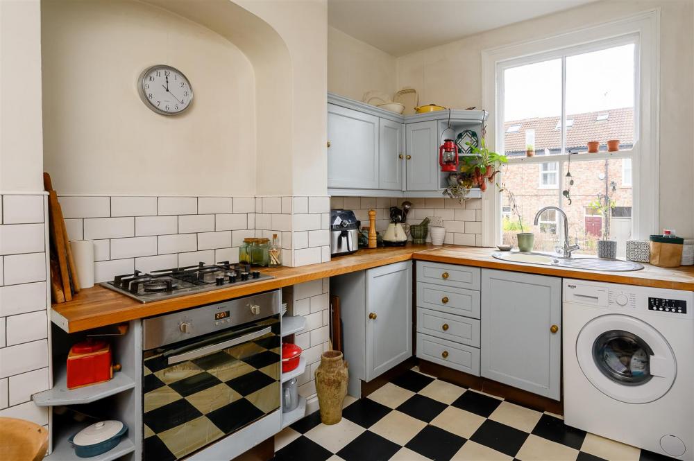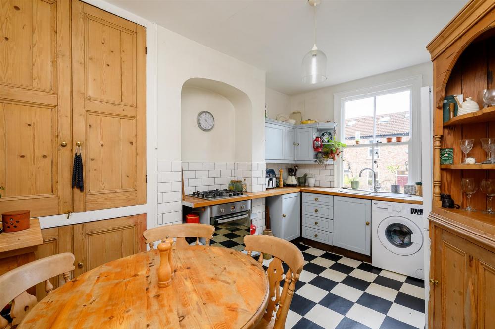 This charming and quaint home is approached underneath the archway of the entrance to Belle Vue Cottages. Stairs from the entrance lead to the first floor and to the living accommodation. To the front of the property is a well-appointed lounge featuring a log-burning stove, while to the rear is a spacious kitchen-dining room complete with fitted storage, an integral oven and hob, and space for a freestanding washing machine.