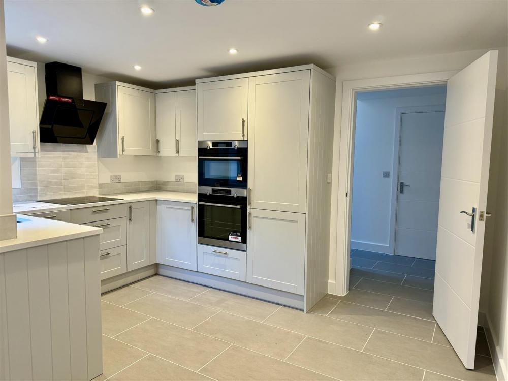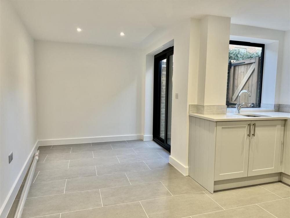 The entrance hallway, with ground floor WC leads through to the kitchen dining room with door leading to a gated side access. The kitchen features modern, shaker style units complimented by Quartz worktops. There is an integral double oven, dishwasher and fridge freezer.