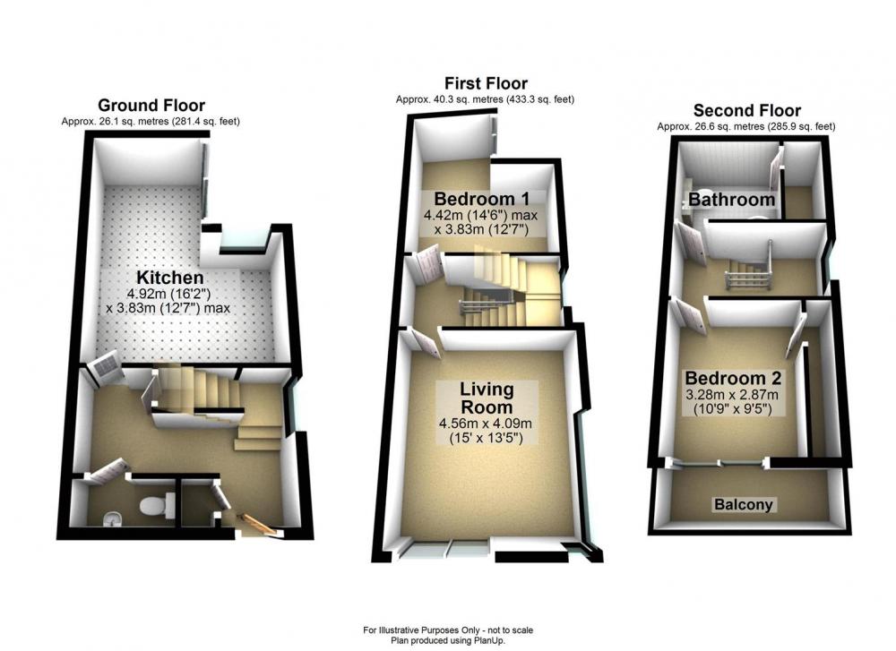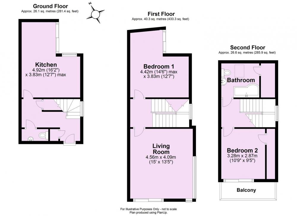 To the first floor there is a spacious living room with full height windows providing ample natural light and a double bedroom. To the second floor there is a master bedroom with private balcony. A beautifully appointed house bathroom with three piece suite completes the accommodation.