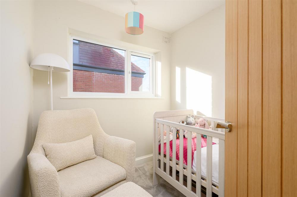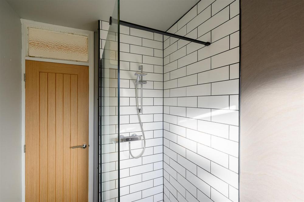 Upstairs, the landing leads to the master bedroom, a double bedroom, and a box room/study, all served by a contemporary shower room.