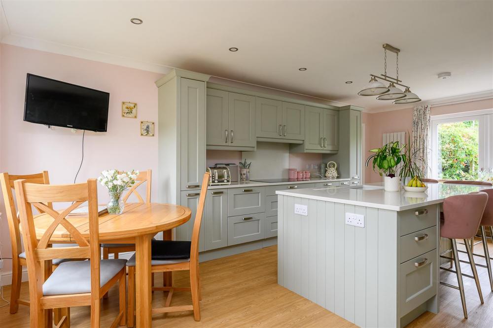 Accommodation comprises: a welcoming entrance hall; noticeably bright with distinctive Oriel window and WC off. Bevel glazed Oak engineered doors lead through to the main hub of the property – an outstanding 'open plan' fitted kitchen diner offering excellent sociable space plus French doors enjoying garden views. The kitchen is by Lucy Jane Interiors and extends the full property depth; fitted with a range of Sage green coloured units plus lovely central island breakfast bar with quartz worktops. Integral units include: 2 Neff ovens, plus Neff microwave oven with plate warming drawer, Bosch induction hob with extractor over, double height fridge, freezer and dishwasher. To the rear of the hall is a rear boot room with useful coats storage cupboard and a separate large utility room with generous storage space plus Belfast sink and matching quartz tops.