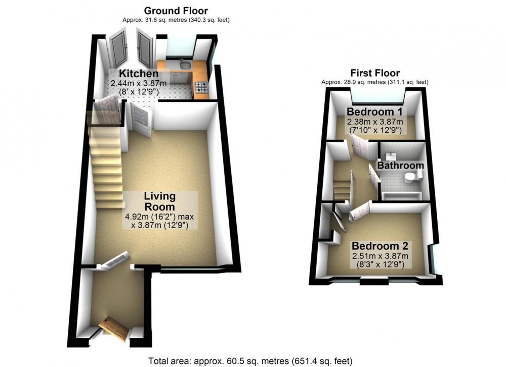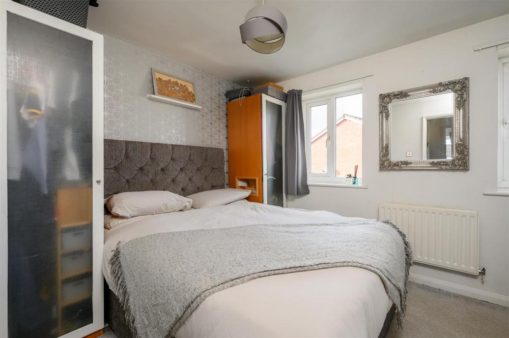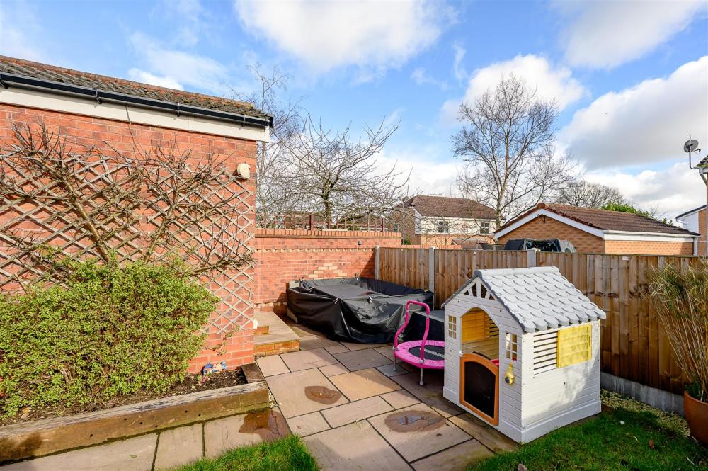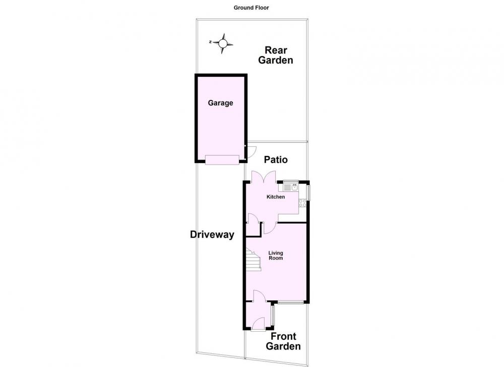 The ground floor features a spacious living room, with staircase and door through into the kitchen diner to the rear. The kitchen offers a range of modern wall and base units, with electric cooker and space for under counter appliances. Patio doors open onto the rear garden, which provides side access to the garage and driveway. To the first floor are two spacious double bedrooms, served by the family bathroom, with shower over bath.