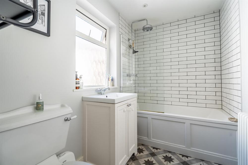 The kitchen is situated to the rear of the property and boasts a range of modern units, integral oven and hob together with space for a washing machine. Beyond the kitchen is a contemporary bathroom with mosaic tiled floor.