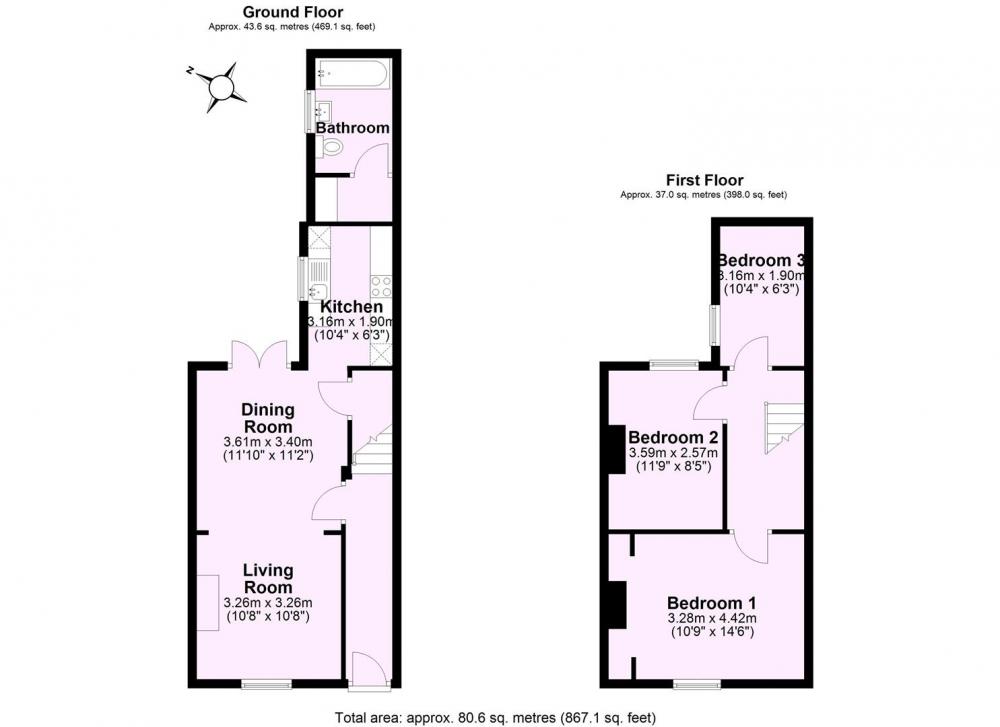 To the first floor, there are two generous double bedrooms, the master featuring a built-in open wardrobe, and a third single bedroom or home office.