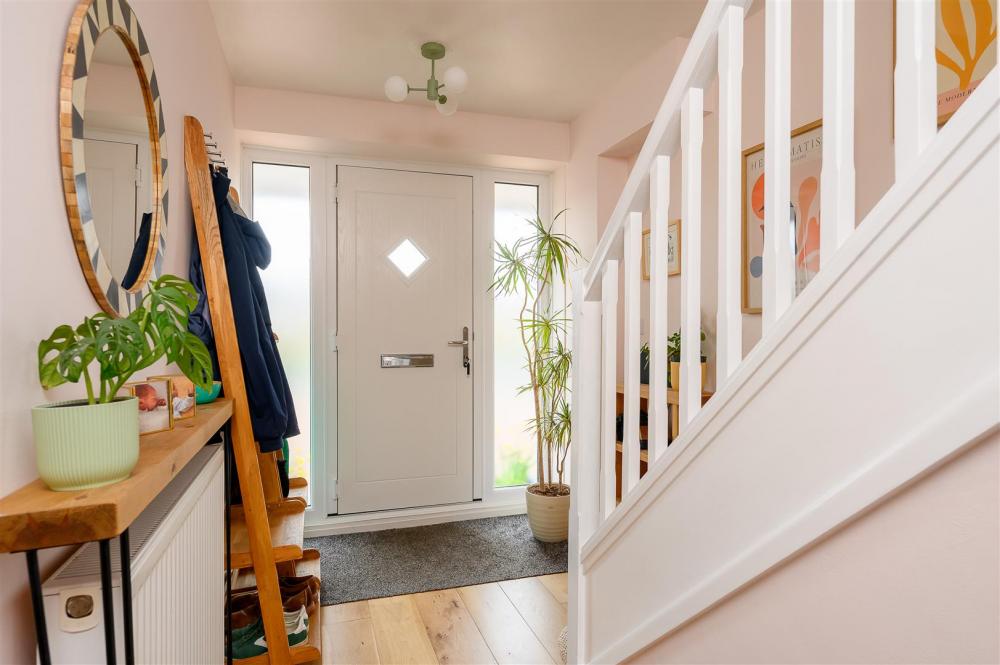 Outside: the residence features a double-width block-paved driveway offering ample off-road parking and a dedicated EV charging point. The exterior boasts a manicured front lawn and a secluded rear garden, perfectly finished with an Indian stone patio and featuring elegant espalier wall-climbing greenery.