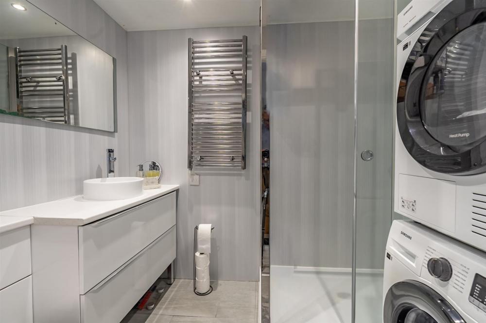 The high quality breakfast kitchen has white Quartz work tops, a breakfast bar, integrated ceramic hob, electric oven and extractor and has space for a tall fridge/freezer. There are two spacious bedrooms, one of which is a double and a quality, modern re-fitted shower room that also has plumbing for a washing machine.