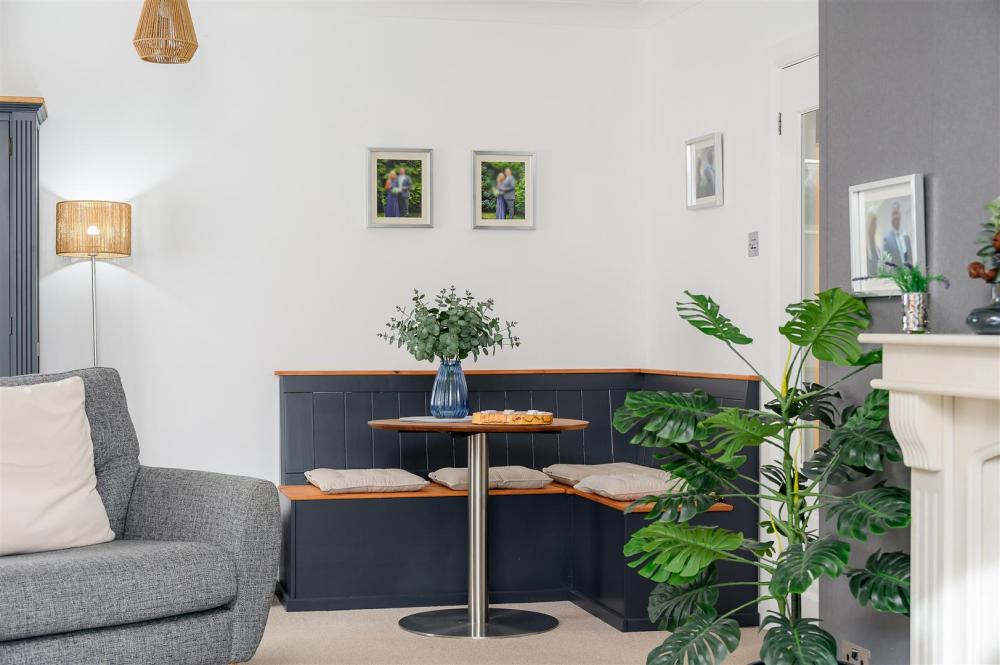 Both bedrooms are generous doubles with fitted cupboards, with the master bedroom further enhanced by an excellent range of fitted wardrobes. The second bedroom is presently arranged as a cosy snug, offering flexibility to suit a variety of needs. The immaculate bathroom is finished to a high standard and also benefits from underfloor heating.