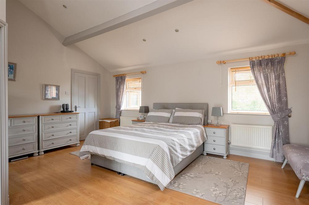 1st Floor: large landing -- 4 double bedrooms -- 5th single bedroom (or office) --the main bedroom benefits from a vaulted ceiling, balcony and en-suite bathroom incorporating bath and separate shower -- contemporary house shower room.