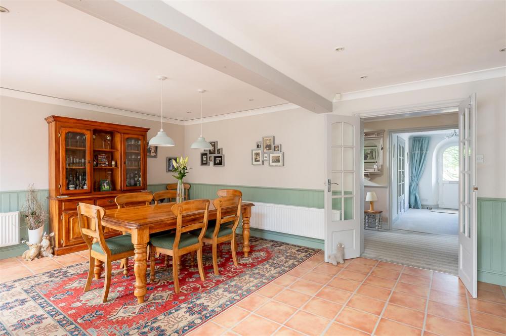 Ground floor: generous sized welcoming entrance hall -- large coats cupboard -- double glazed doors to a living room + large bay window to the front elevation + feature electric fireplace -- WC --large open plan 'L' shaped kitchen diner enjoying garden views -- utility room incorporating plant room + larder cupboard + access to both the garden and integral garage -- lovely sized noticeably bright garden room with windows to 3 elevations plus a vaulted ceiling & under floor heating -- impressive powder coated steel framed glass covered pergola from which to enjoy the garden.