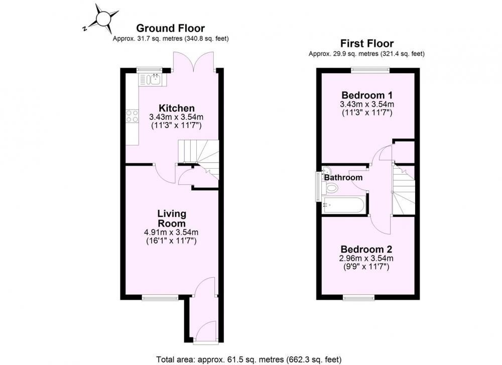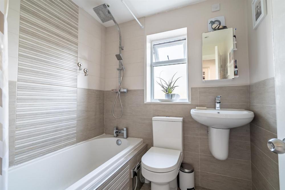Upstairs, there are two well-proportioned double bedrooms, complemented by a family bathroom featuring a shower over the bath.