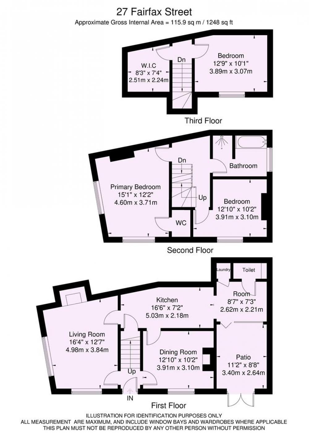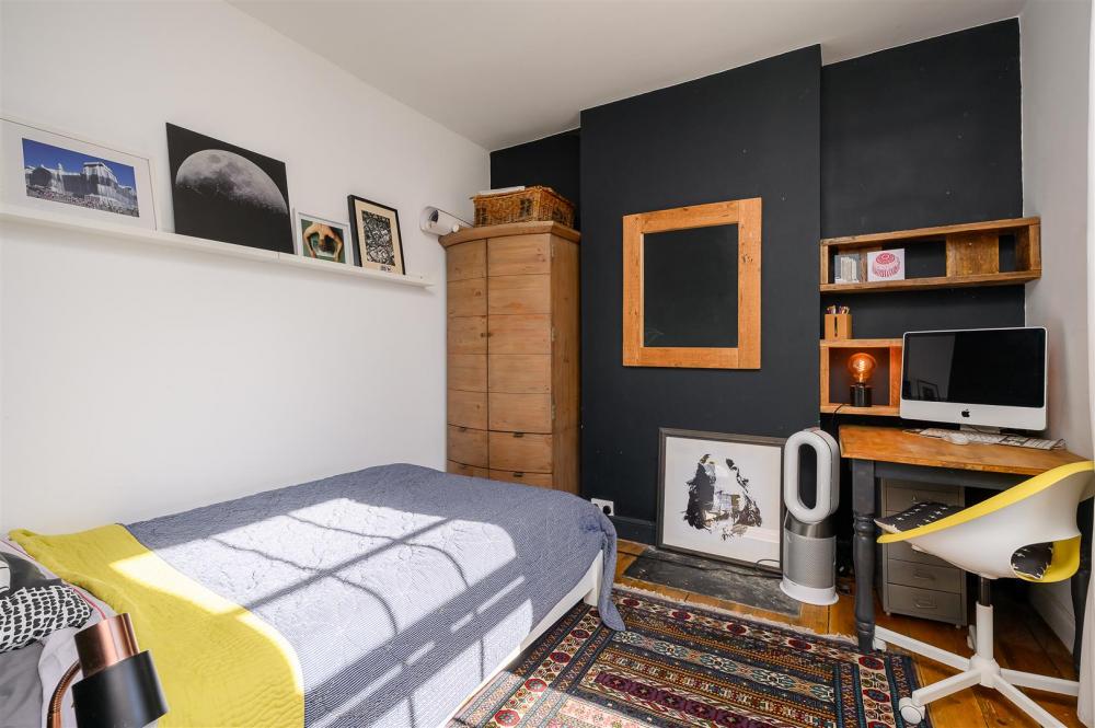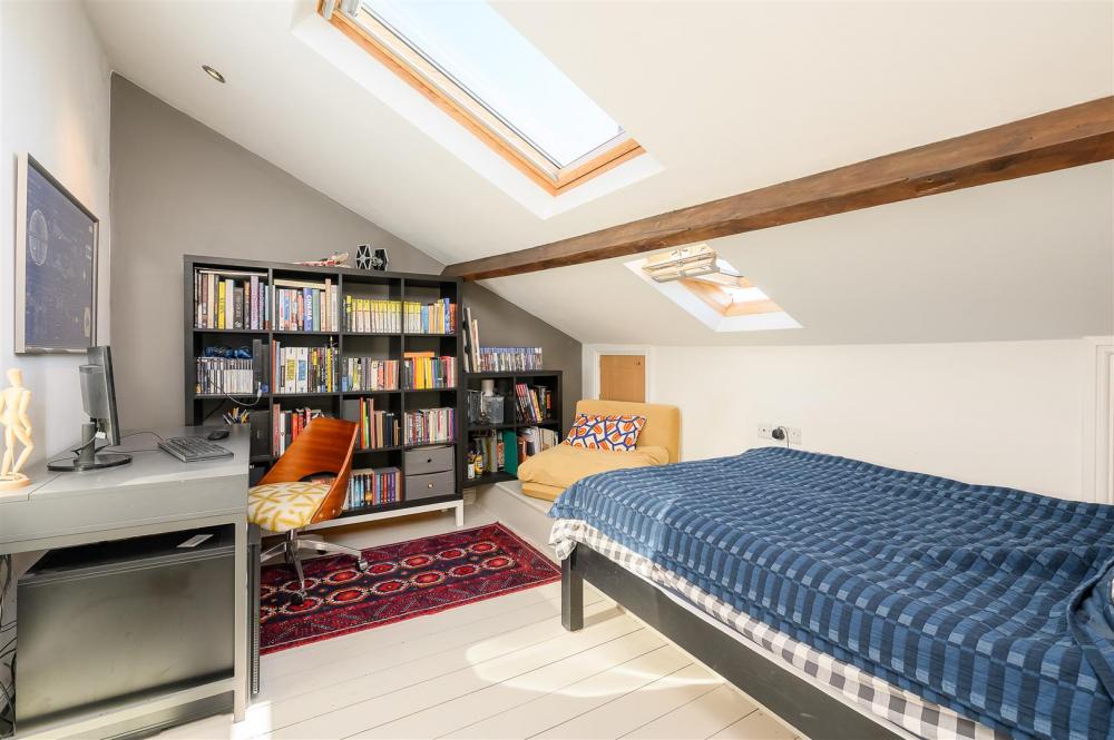 On the first floor, there is a well-proportioned master bedroom, a second double bedroom, and a family bathroom. The second floor provides a further double bedroom along with a large walk-in cupboard.