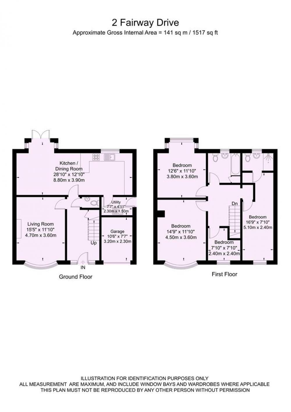 A welcoming entrance hall with a convenient WC leads into a spacious living room, featuring a log burner and a large bay window overlooking the front garden. To the rear, an immaculate open-plan kitchen and dining area creates the perfect family and entertaining space. The kitchen is fitted with a stylish range of modern wall and base units and includes integrated appliances such as a fridge freezer, double oven, induction hob, and dishwasher. The dining area enjoys French patio doors opening onto the rear garden, while a practical utility room sits just off the kitchen.