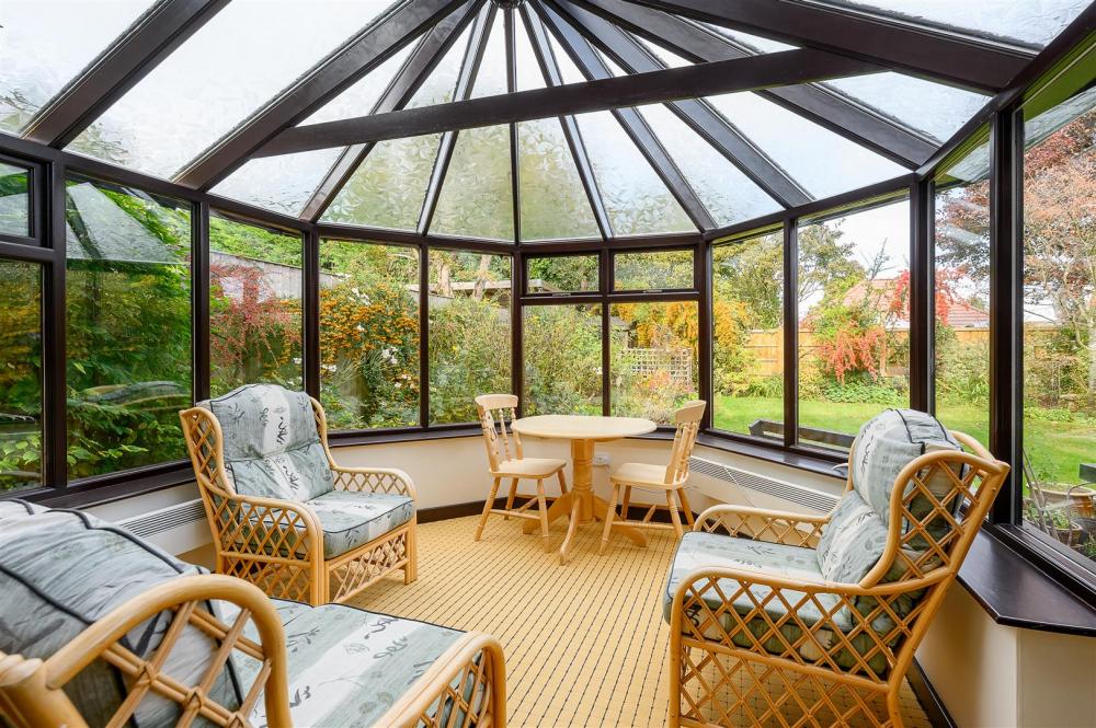 The bright and spacious living room enjoys a charming bay window overlooking the front garden and benefits from sliding doors that open through to the dining room, creating an ideal space for entertaining. Further French sliding doors extend into the conservatory, providing additional living space and delightful views over the rear garden.