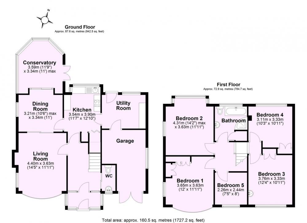 To the first floor are four generous double bedrooms, and a further single bedroom, all served by the family bathroom, with separate bath and shower,