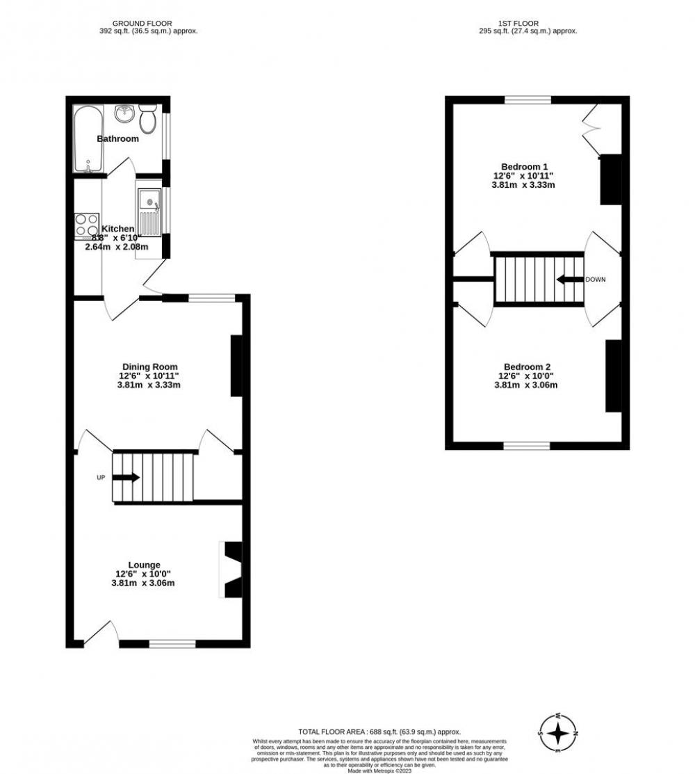 The internal accommodation comprises a good sized living room, and a dining room. The fitted kitchen includes an array of contemporary wall and base unit, integrated appliances complemented by stylish worktops. To finish the ground floor accommodation is a recently fitted bathroom suite. To the first floor are two double bedrooms.