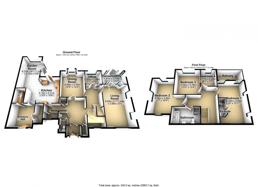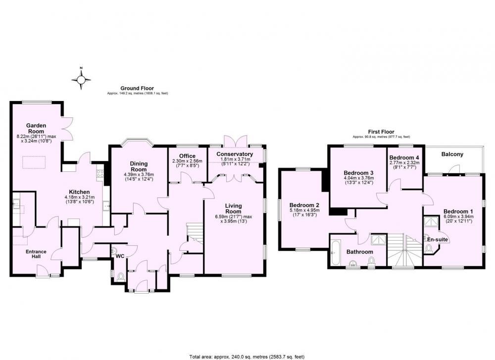 The ground floor space is extensive, with two entrance halls, three reception rooms, garden room, home office and a beautiful open plan dining kitchen