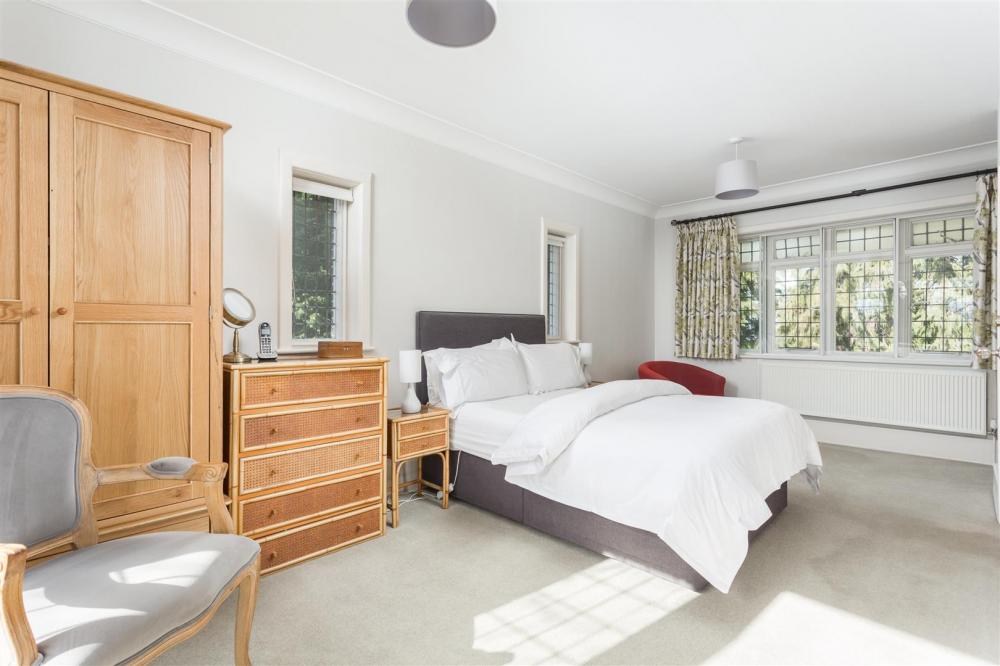 The bespoke, contemporary kitchen dining room offers a sociable space for families and entertaining and extends into a bright garden room enjoying views across the garden. The kitchen includes an integral induction hob, oven, with warming drawer, and dishwasher. Also to the ground floor is a separate utility and WC. In addition there is ample storage throughout, including walk in pantry and linen cupboard