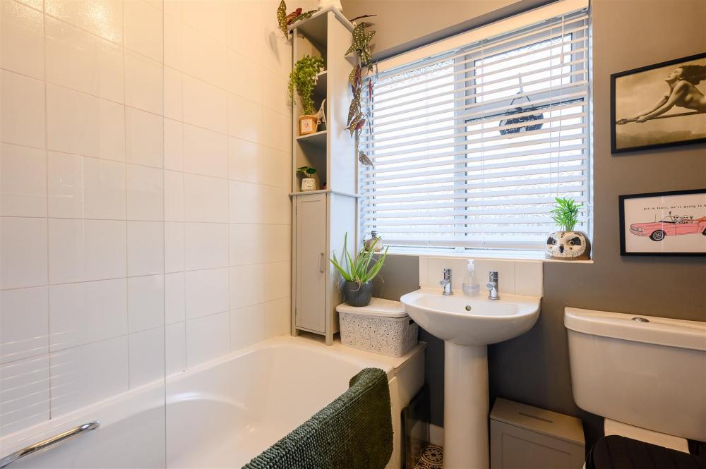 To the first floor are two double bedrooms, each with fitted storage and the family bathroom.