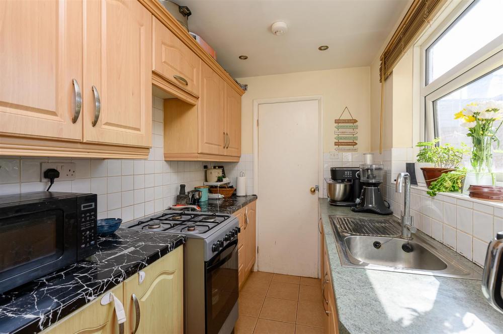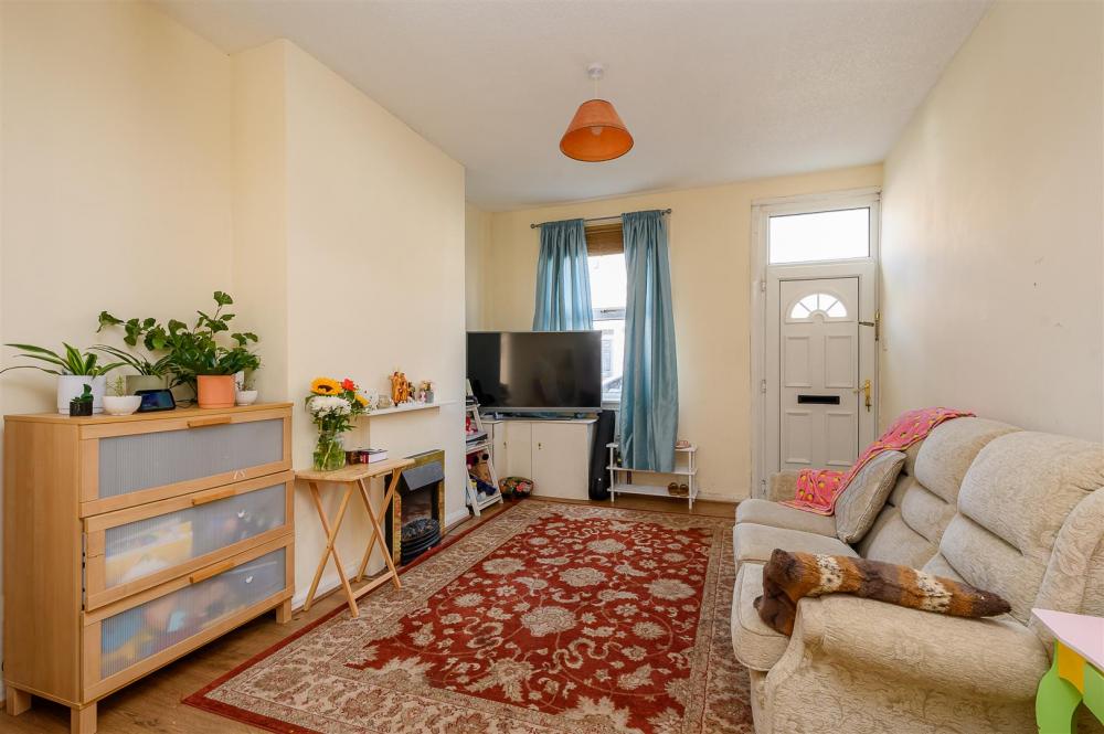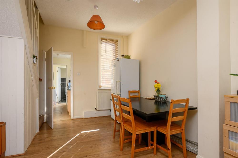 Entered directly from the street you are welcomed into the light and spacious living through dining room with gas fire. To the rear is a galley-style kitchen with a range of base and wall units and space for a freestanding cooker. Beyond, a rear lobby leads to the ground-floor bathroom, fitted with a modern white suite.