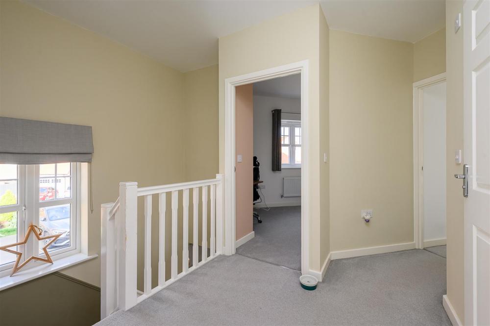 To one side of the house a driveway leads to a single garage and gateway into the rear garden.