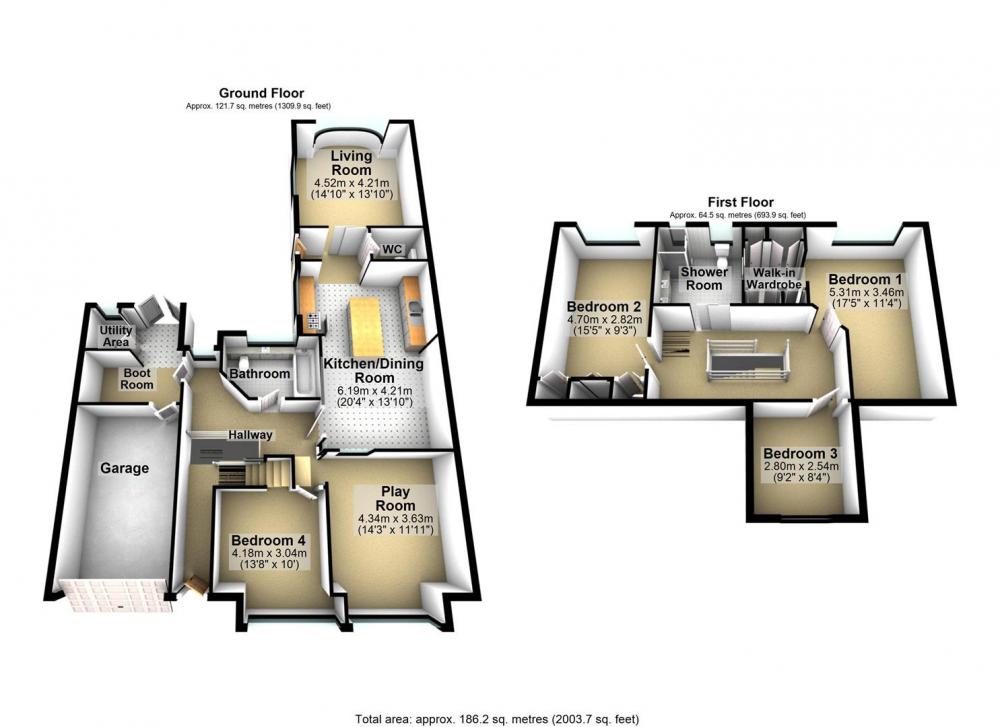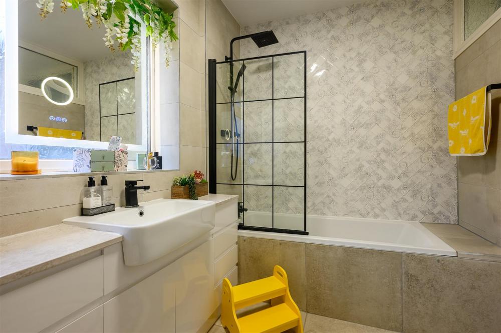 The property is entered via a welcoming and generous hallway, complete with staircase rising to the first floor. The ground floor provides flexible living space, including a spacious double bedroom and a versatile playroom which could equally serve as a fifth bedroom, home office or additional reception room. A stylish and well-appointed family bathroom completes the ground floor accommodation.