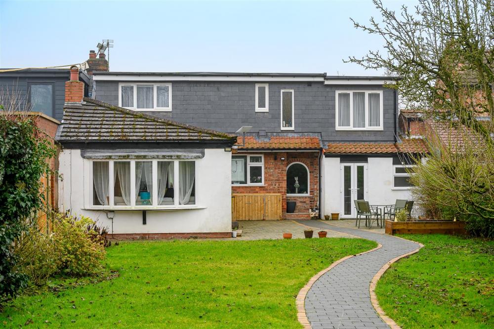 Externally, the property boasts a beautifully maintained and mature rear garden, featuring a large patio seating area ideal for outdoor entertaining, along with an outbuilding providing useful storage space.