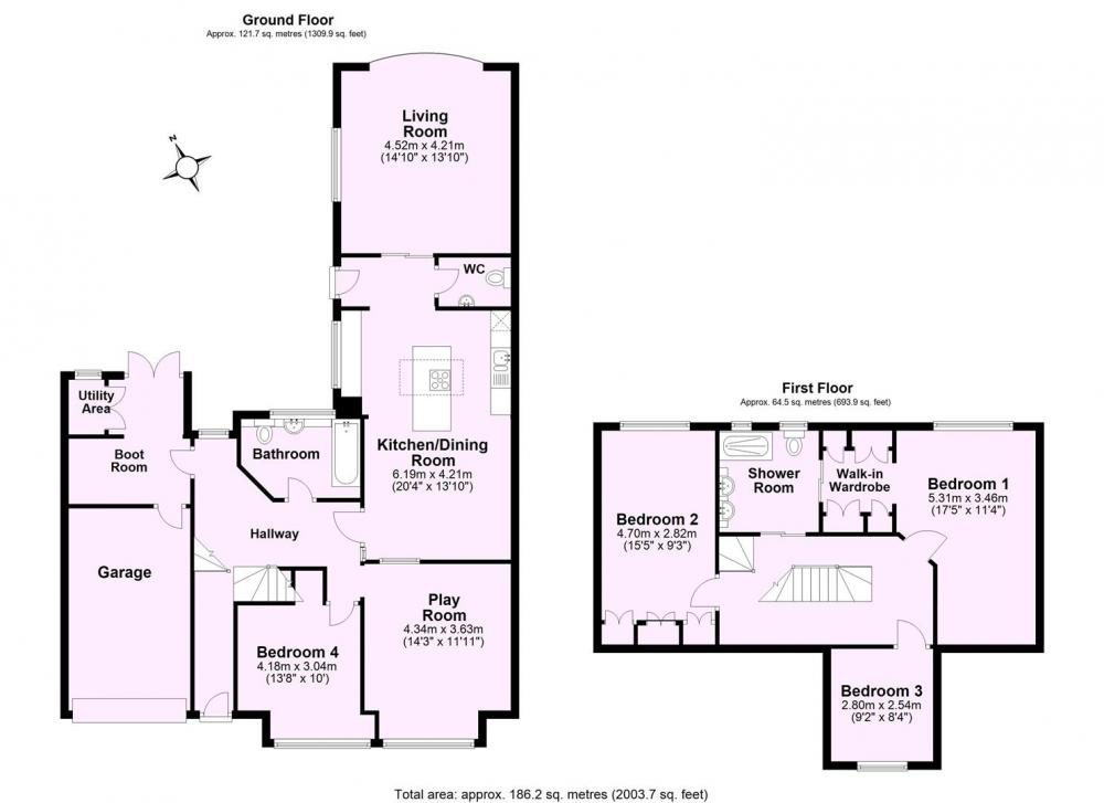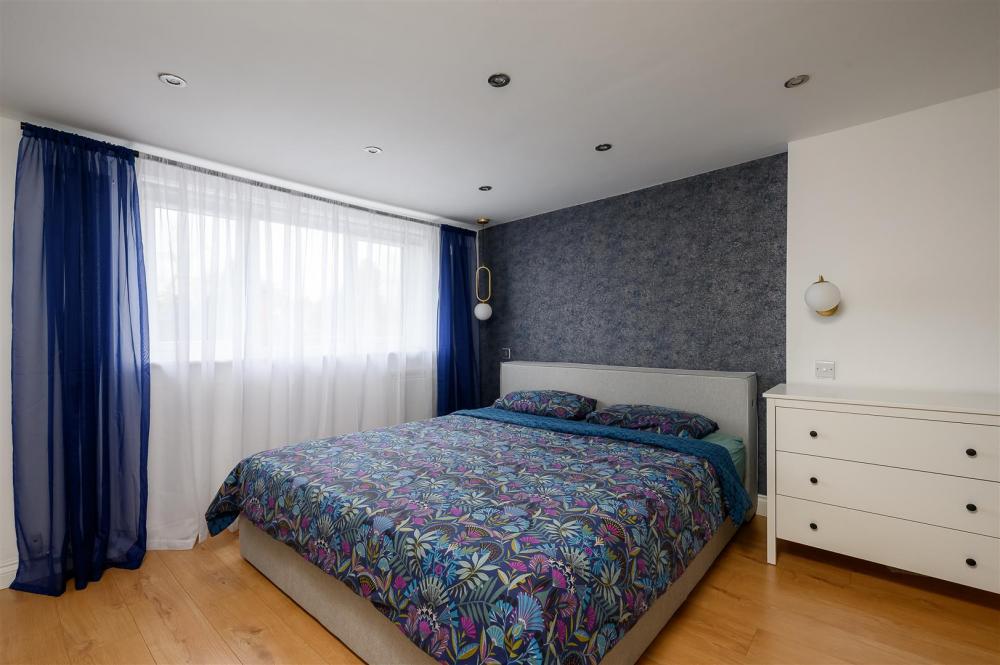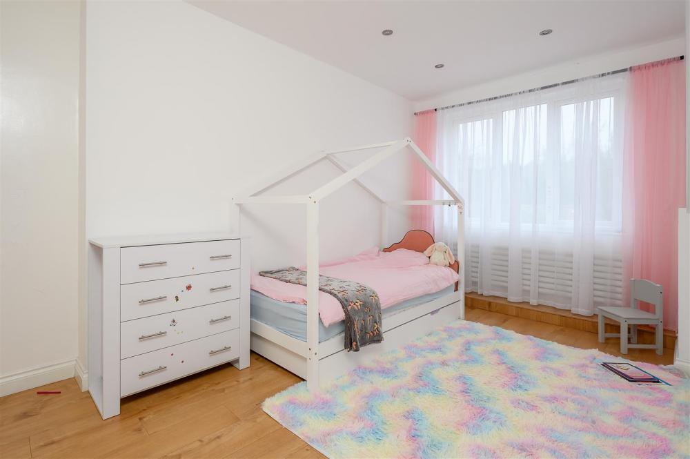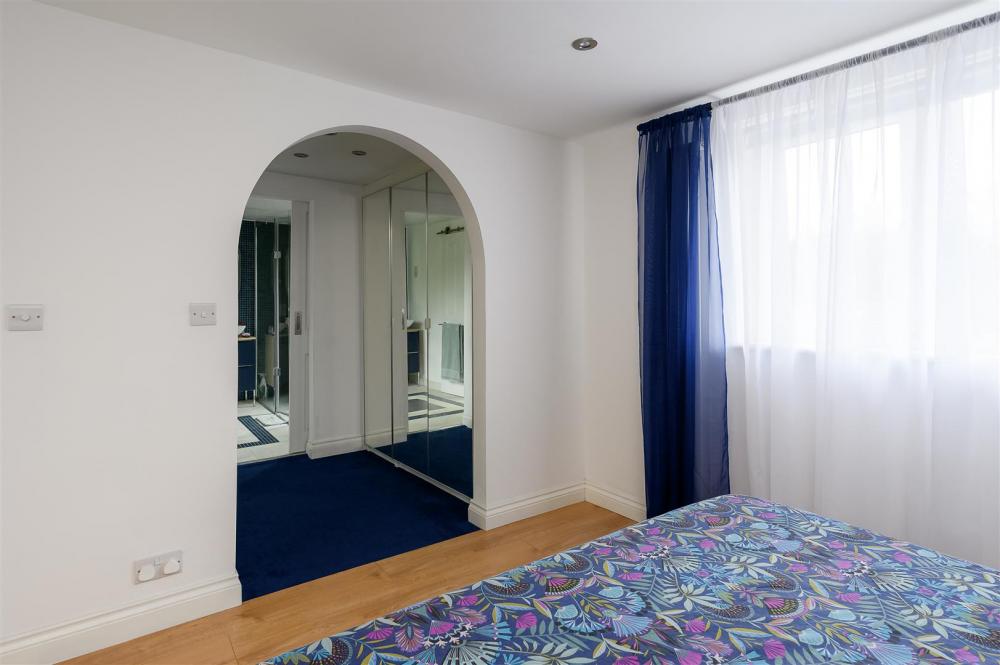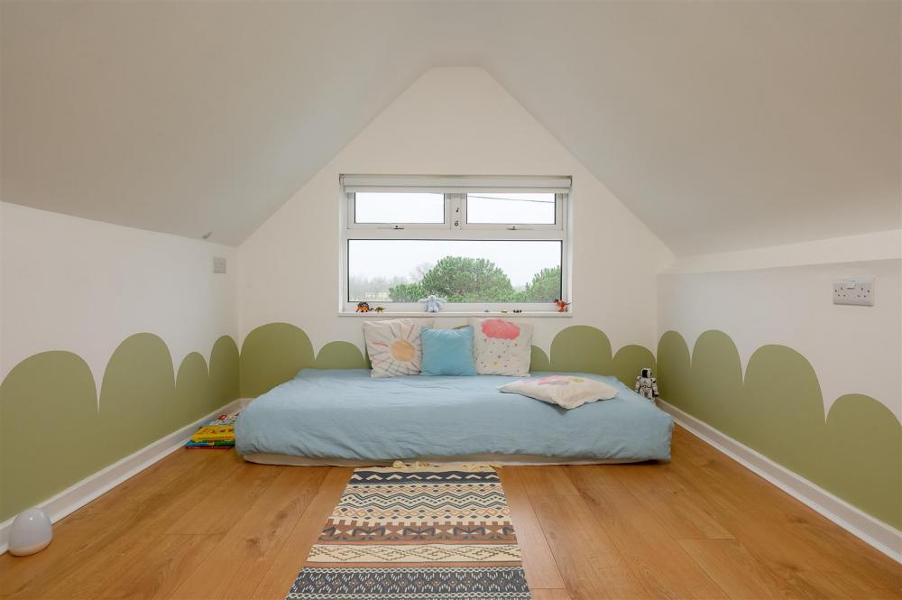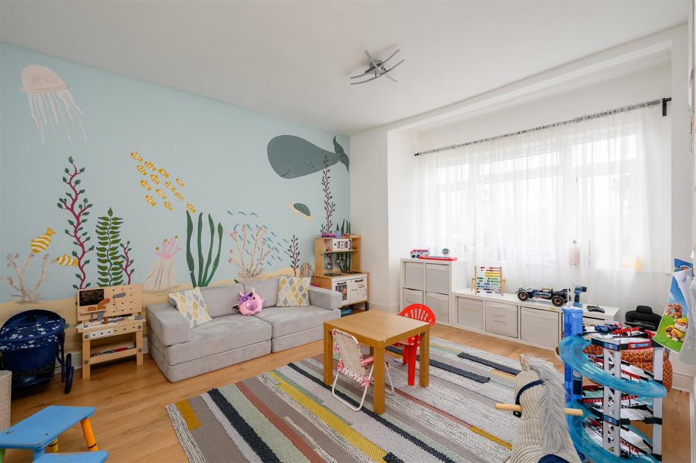The ground floor features flexible living space, including a large double bedroom and a versatile playroom, which could also serve as a fifth bedroom, home office, or additional reception room. A stylish, well-appointed family bathroom completes the ground floor accommodation.