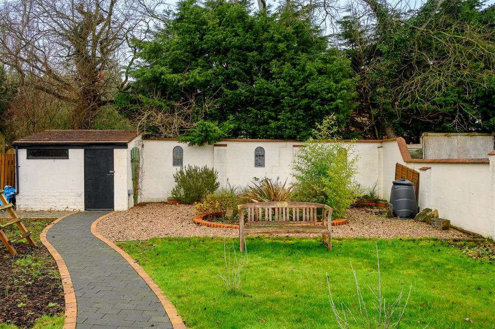 Externally, the property boasts a generous mature garden with fruit trees, a playground, and versatile landscaping, including an outdoor kitchen area with working top, sink, and storage perfect for outdoor entertaining. An outbuilding provides additional storage space.
