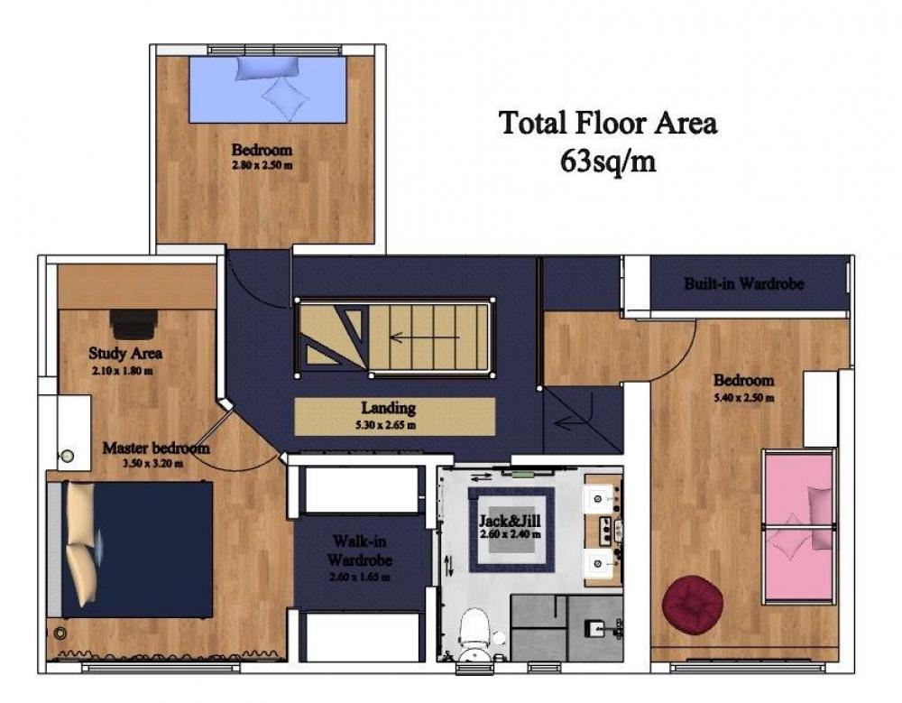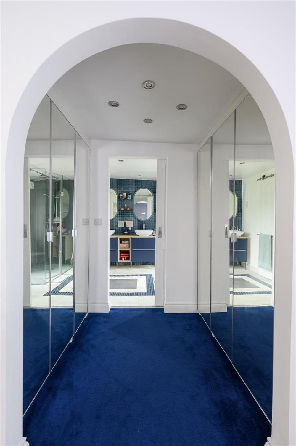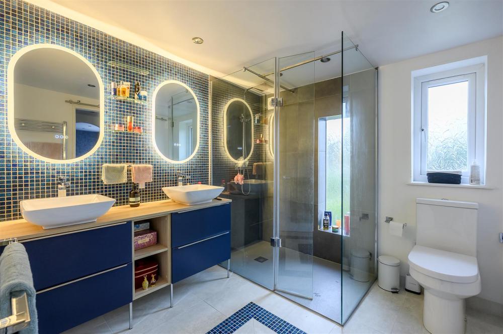 To the first floor, a spacious landing leads to the impressive principal bedroom which benefits from a mirror-fronted dressing area and access to a well-appointed Jack and Jill shower room. There are two further generously sized double bedrooms completing the first floor accommodation.