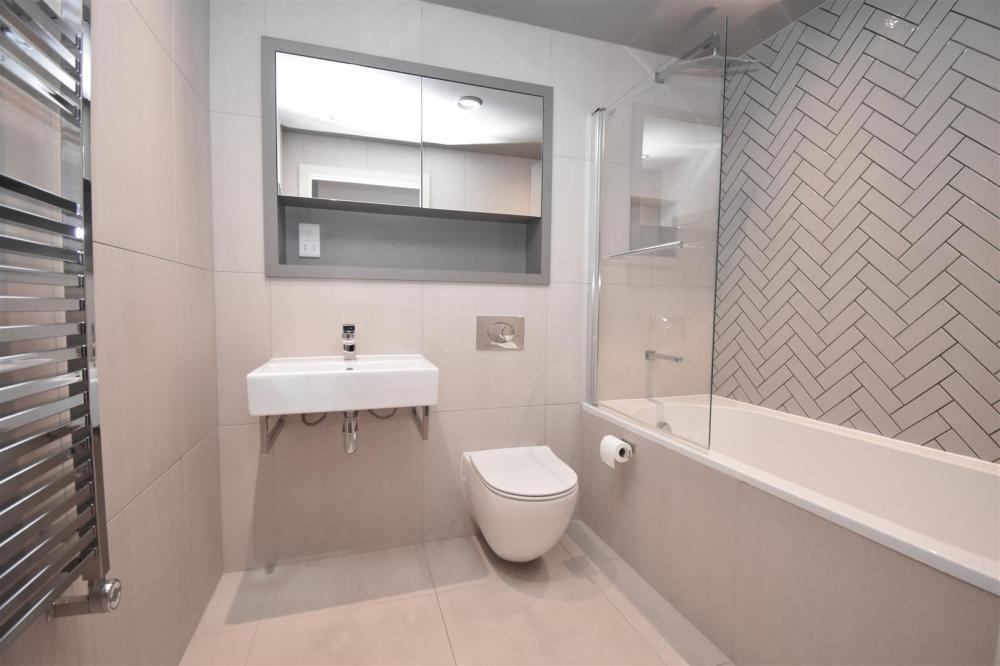 The master bedroom is fitted with internally illuminated wardrobes incorporating drawer units and has an en-suite shower room off the bedroom. The second double bedroom comes with fitted wardrobes. The generous house bathroom includes a mirrored vanity storage unit and heated towel rail.