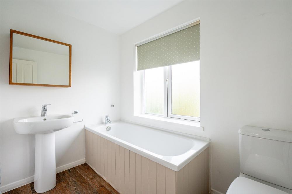 To the front of the property is a Beech hedge and paved area that provides off road parking for two vehicles. The main garden lies to the rear of the property; which is noticeably secluded and generous in size; flanked by well-established borders and trees. Immediately to the rear of the property is a seating area, which is a combination of gravel and paving. The garden includes a vegetable patch, apple tree and timber storage shed. A timber gate with pathway links front and rear.