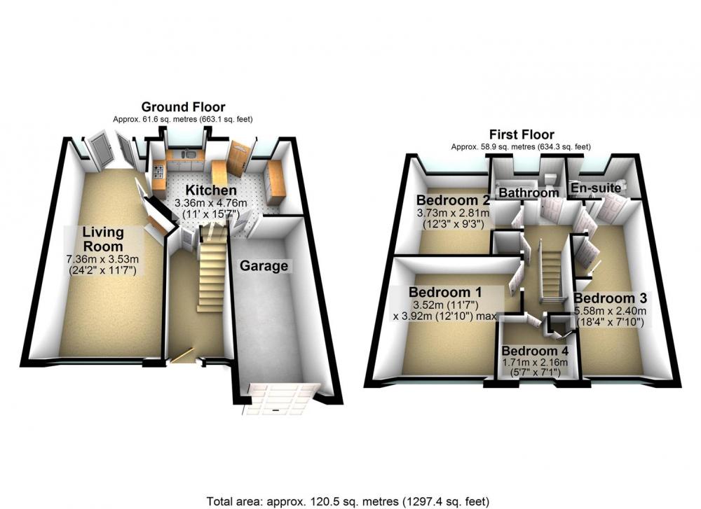 To the first floor are four bedrooms, including both an en-suite shower room to the main bedroom and fitted wardrobes. There is also a modern house bathroom. Airing cupboard.