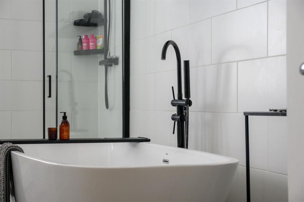 On the first floor there is an attractive galleried landing off which are two generous double bedrooms, situated over the lounge and dining room, and a superb modern bathroom with free standing tub and separate shower cubicle.