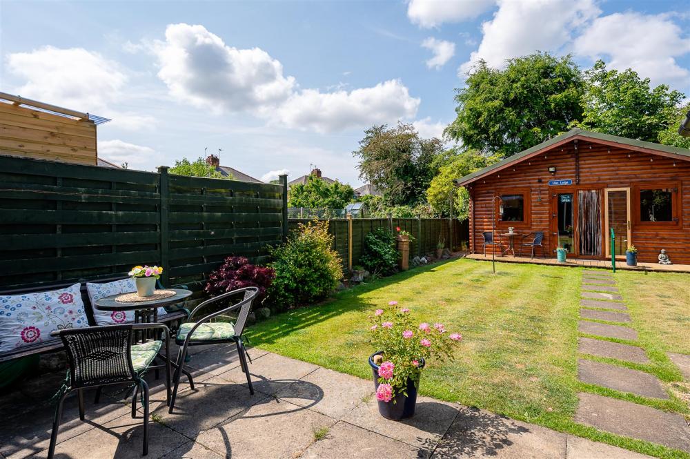 The spacious rear garden is a true highlight, featuring a patio, a lawn, and a versatile log cabin equipped with power and a storage mezzanine, that’s perfect for guest stays, a home office, or even a potential Airbnb or rental. Additional storage and flexibility are offered by a lean-to garden room and a brick-built store. Off-street parking is available through the private driveway at the front.