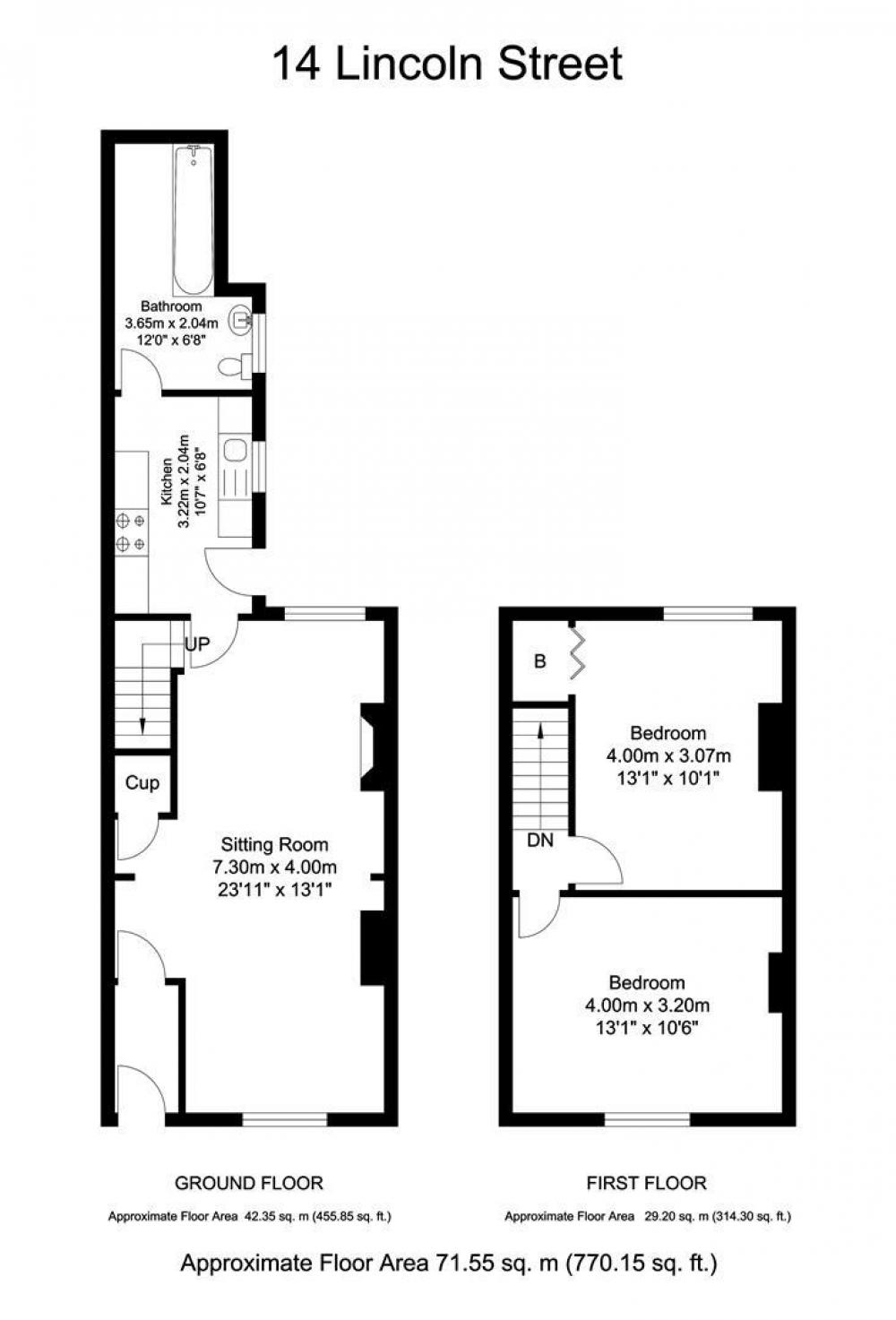 The house is entered directly from Lincoln Street into a small vestibule and then into the spacious 23ft living and dining room with laminate wood flooring and a traditional arched fireplace and open basket fire. The room offers excellent space for both living and dining with a useful storage cupboard and stairs off to the first floor. Beyond the living room lies the modern galley style kitchen with a good range of fitted units including an integrated oven, gas hob and extractor fan together with a door out to the rear courtyard garden and a further extension into the impressive contemporary ground floor bathroom with shower over the bath.