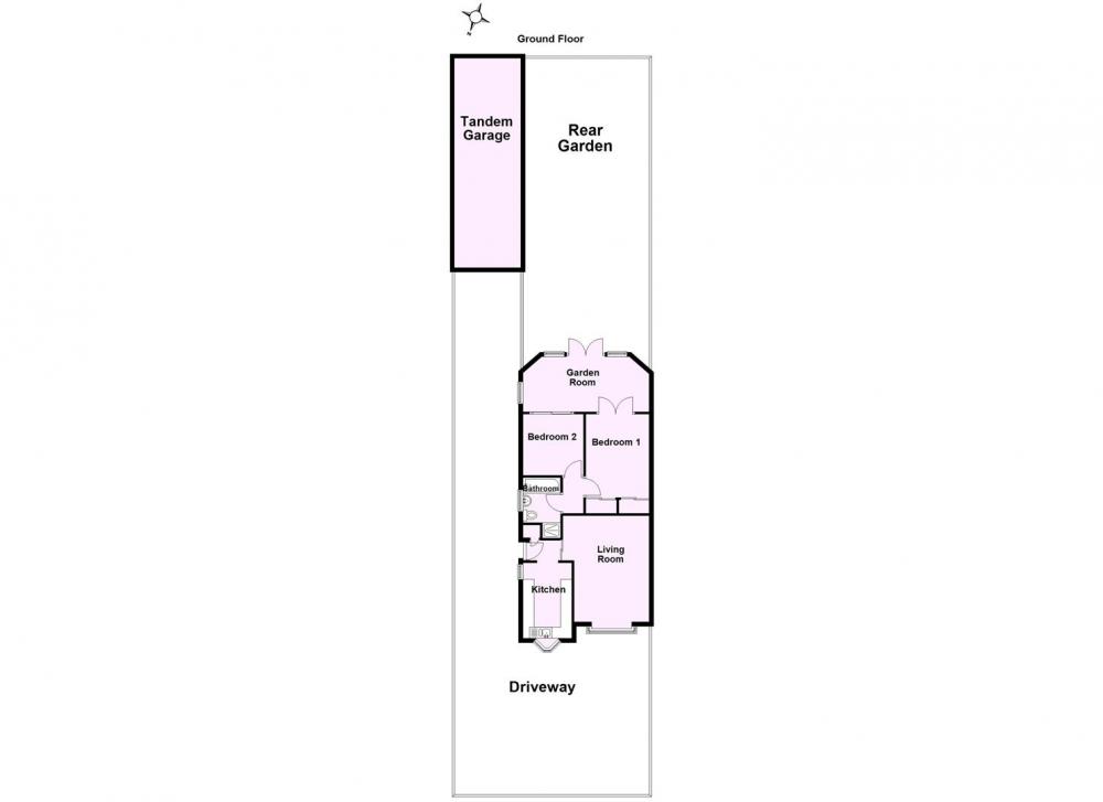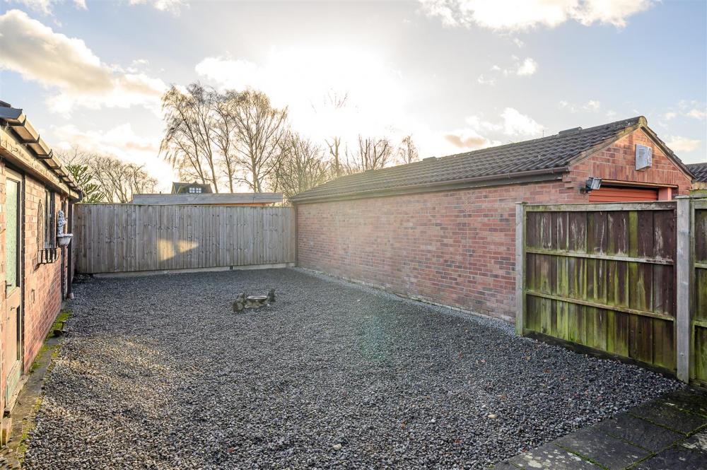 The property is approached via a driveway, offering off street parking and leading to the single garage and side entrance.