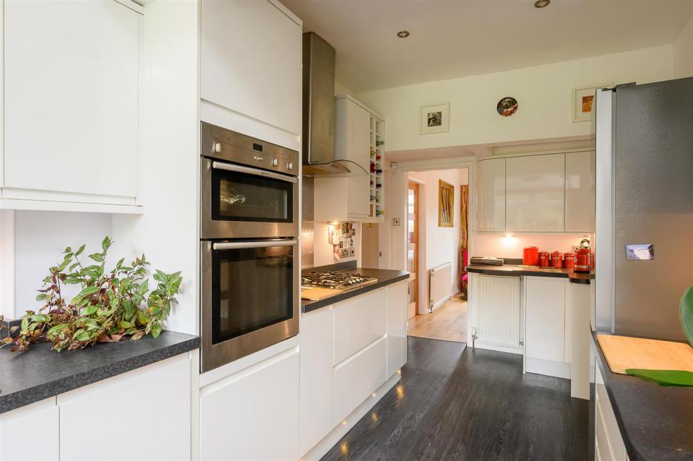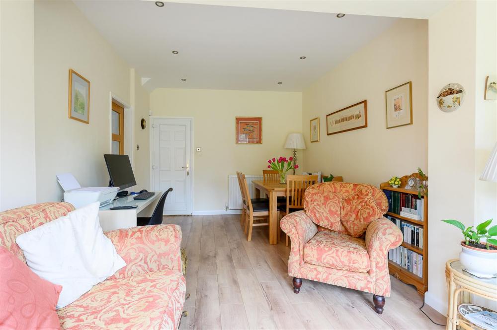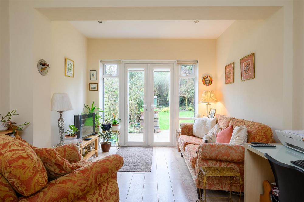This lovely family home is approached via a driveway that leads to the integral garage with parking to the front and a path that welcomes you under a porch entrance into a generous reception hall. There is a useful ground floor shower room and WC and access from the entrance hall into the two reception rooms with interconnecting glazed double doors. The room to the front of the house has a bay window and is currently the dining room, whilst the living room benefits from a door and glazed side panels giving access to the rear garden. To the side of the living room you will proceed into the beautifully fitted kitchen with a range of white fronted units incorporating eye level double oven/grill and microwave, separate gas hob with extractor and plumbing/fittings for additional appliances and a further doorway returning to the front hall. Next to the kitchen you will find an additional reception room, ideal as a breakfast area/garden room with laminate flooring, French doors and glazed side panels that give access to the rear patio.