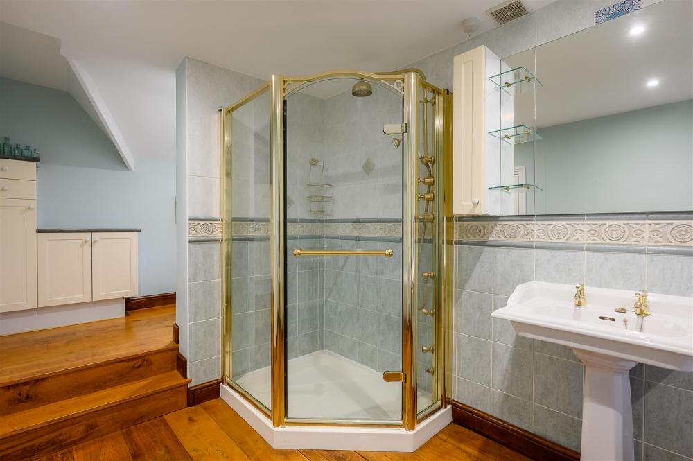 Externally, the former garage has been converted into a self-contained annexe, complete with kitchenette and shower room, making it ideal for guests or multigenerational living. Additional storage is located to the front.
