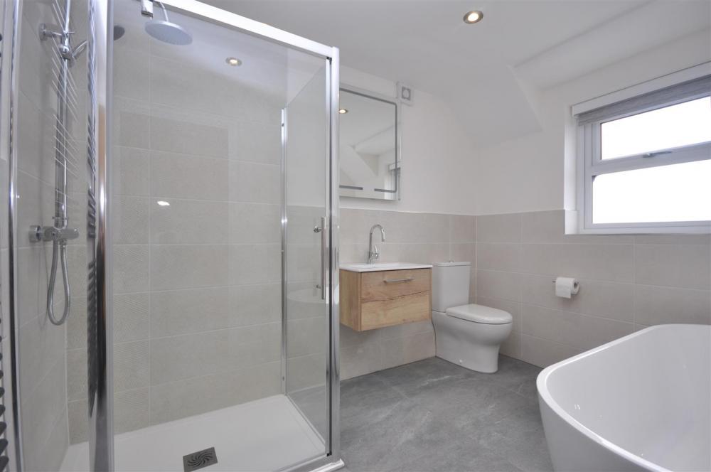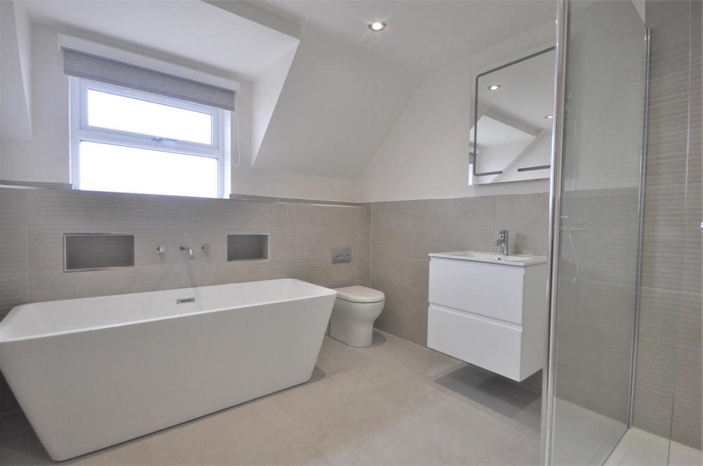 To the first floor is the master bedroom with walk in cupboard, bespoke integral wardrobes and ensuite bathroom with separate shower cubicle and free standing bath. Second double bedroom with bespoke wardrobes and ensuite shower room, two further double bedrooms and family bathroom.