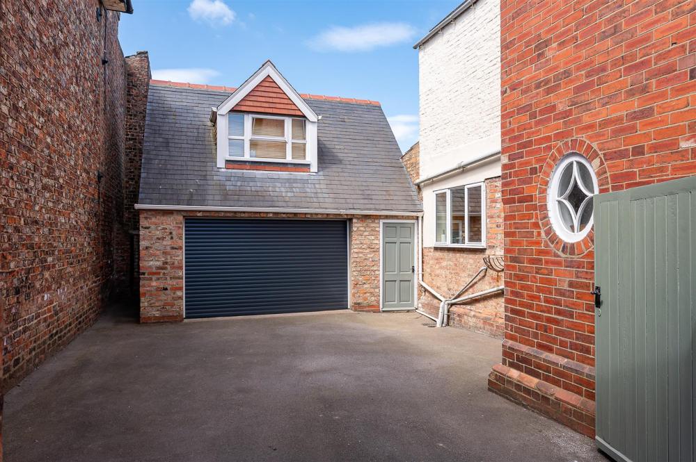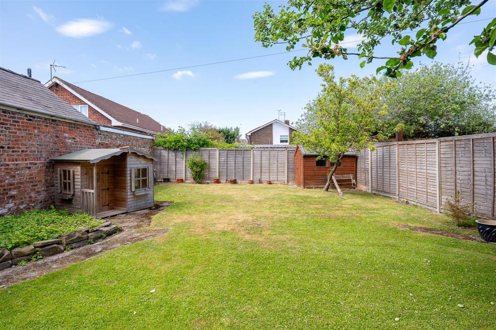 Outside, the generous and private rear garden is a tranquil haven, featuring mature fruit trees, a spacious lawn, and a patio seating area for summer entertaining. A large double garage with electric door and secure gated driveway adds further appeal, with ample off-street parking available at the front.