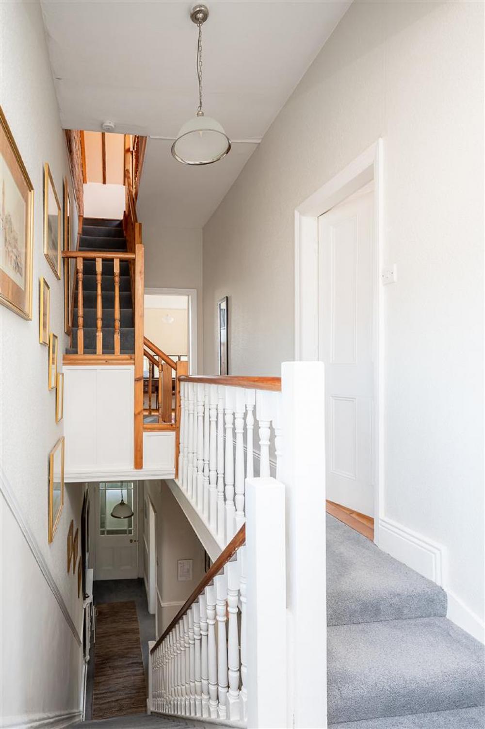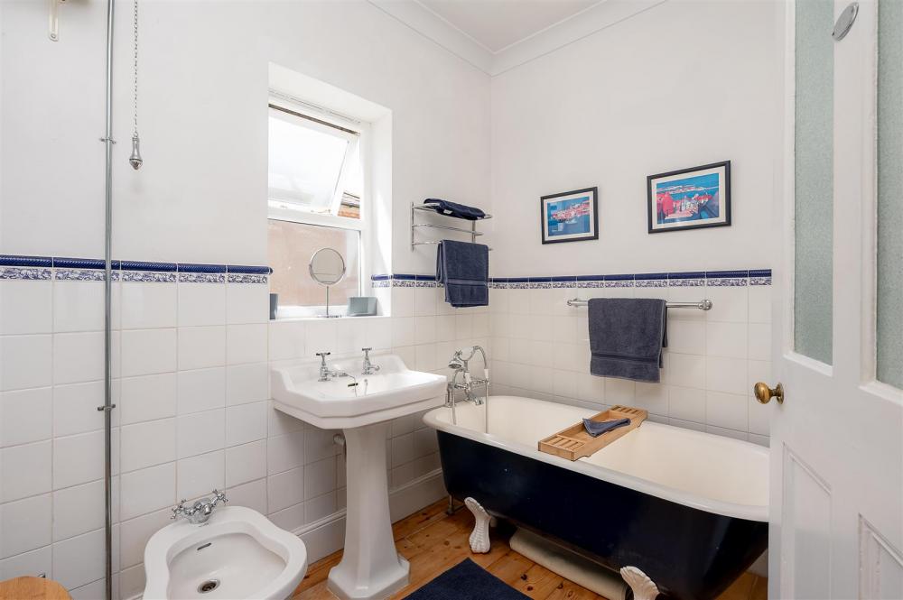 Upstairs, the first floor hosts three well-proportioned bedrooms and a large family bathroom, complete with a four-piece suite and a stunning freestanding bath. A second staircase leads to the loft conversion, providing a fifth double bedroom with a Velux roof light—ideal as a private guest suite, teenager’s retreat, or home office.