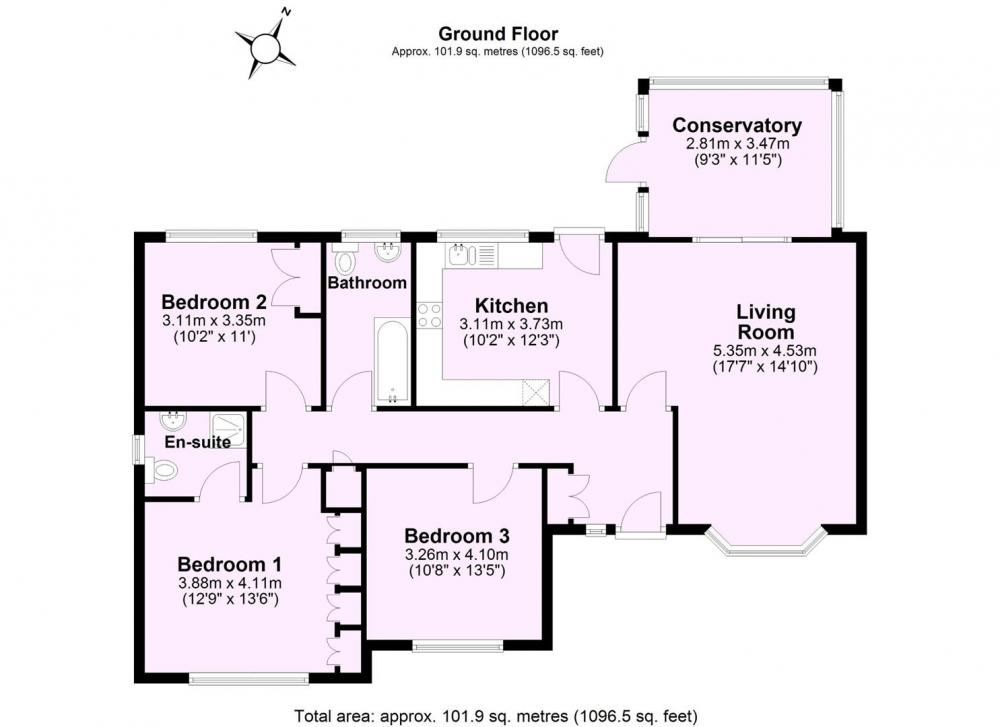 The central corridor continues through to the beautifully fitted kitchen, complete with an extensive range of light-fronted units, double oven and under-counter appliance space. Opposite the kitchen is the third double bedroom, which could equally serve as a dining room. However, the main reception room offers ample space for dining if preferred.