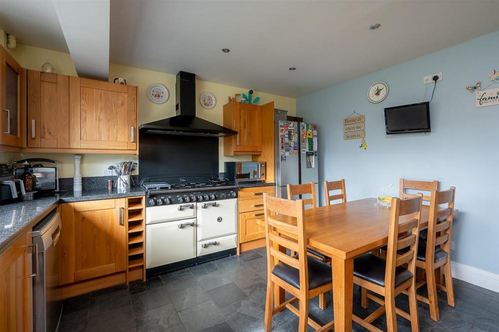 To the rear of the entrance hall lies the kitchen, with a range of solid oak fronted units topped with granite work surfaces, slate tiled flooring, large Range Master cooker with extractor hood over, Belfast sink and ample space for a large table and free-standing appliances.