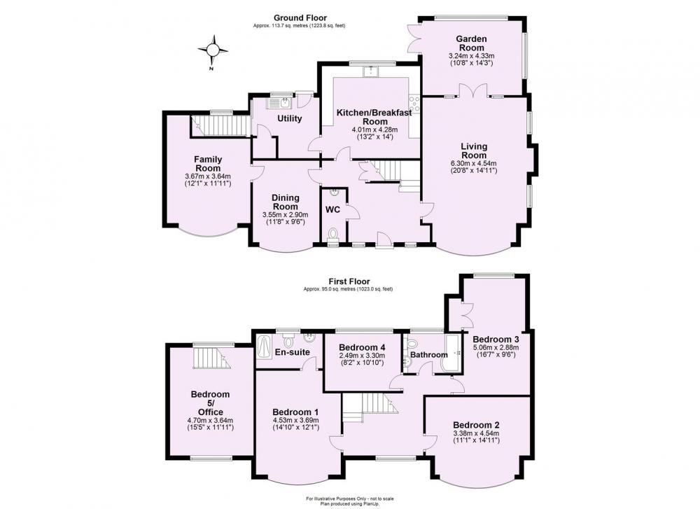 To the side of the kitchen is a useful utility room with space and plumbing for washing machine and tumble drier. A second staircase leads to a versatile fifth bedroom/office.