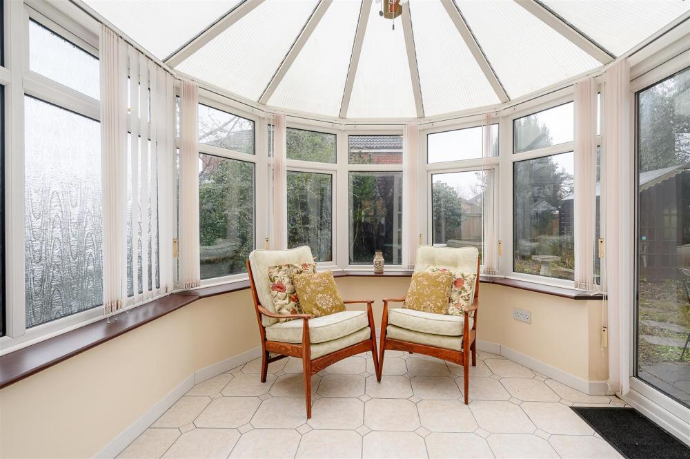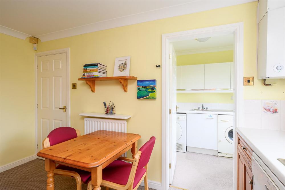 The accommodation is spacious and well laid out. A bright and airy living room leads through to a sun room with direct access to the rear garden. There is a separate dining room providing a versatile space, ideal for use as a snug or home office. To the rear of the property is the fitted kitchen, featuring a range of wall and base wooden units, an integrated oven and hob, and space for a freestanding dishwasher. The adjoining utility room offers excellent additional storage, space for a washing machine and tumble dryer, and a door leading out to the garden. A ground floor WC lies off the hallway.